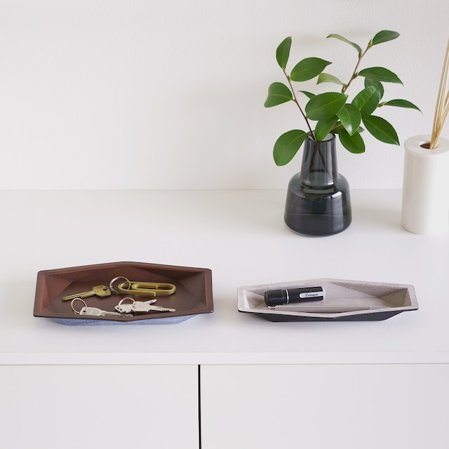 [多面体が美しくインテリア性が高いレザートレイ]